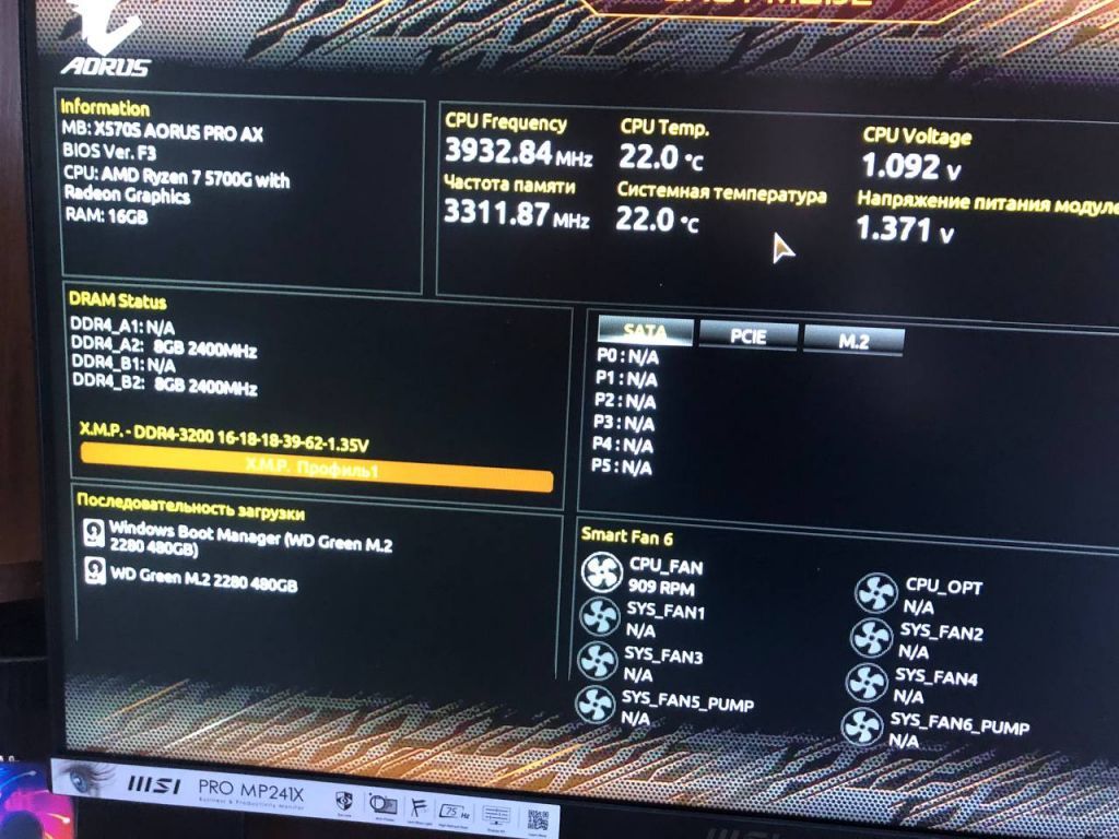 Процессор AMD Ryzen 7 5700G и материнская плата Gigabyte X570S AORUS PRO AX